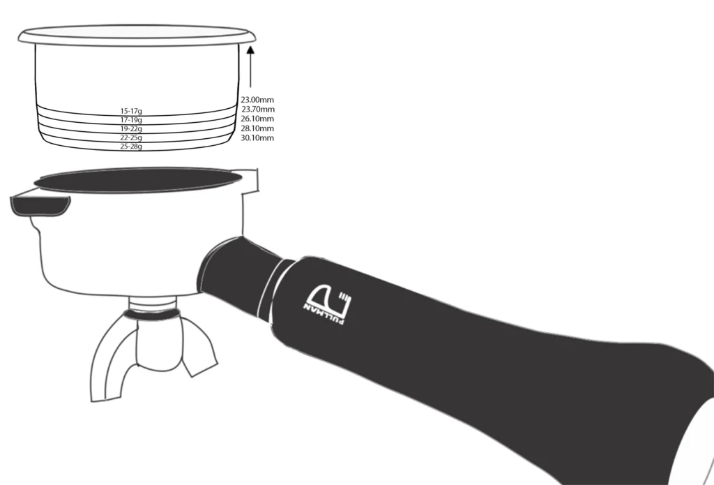 - Suited for tampers 58mm – 58.4mm in diameter. BUT for maximum surface coverage, the #BigStep base (58.55mm) provides the best possible result with the filter baskets.